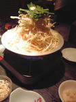 とにもかくにも、2人で鍋を注文。唐辛子スープかとんこつスープかを選べるのですが、初めての店で辛さの度合いがわからないから、小手調べでとんこつスープをチョイス。