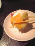 『半熟たまごのてんぷら』というかなり興味をそそられる品なんですが、もう一口噛んだらホンットに半熟トロトロの黄身が流れ出してきて…!とるものもとりあえず写真を急いで撮って、黄身が流れ落ちないうちに一気にパクリといきました!ほんまにうますぎる…!!